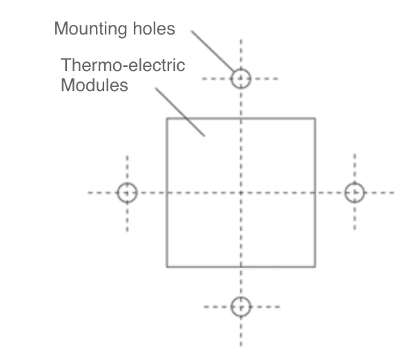 • 1. Position each mounting hole on the line passing through the center of each side of the thermo-electric module, as shown in Figure 1.