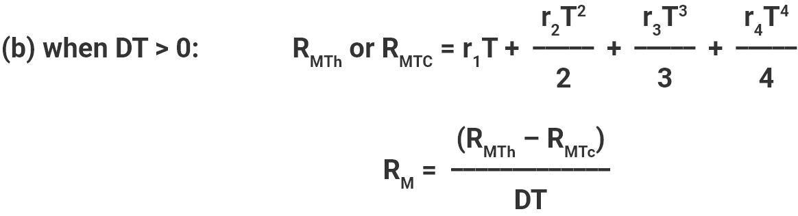 11.2.2 MODULE RESISTANCE: The electrical resistance of a thermoelectric module, as a function of temperature, can be expressed as third order polynomials for the two conditions (a) and (b):