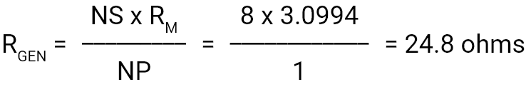 With a group of eight modules, the next most logical connection configuration is two parallel strings of four modules, i.e., NS = 4 and NP = 2. Generator resistance for this configuration is thus: