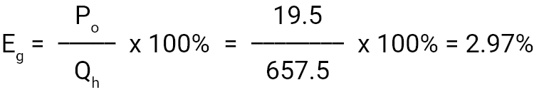 Qc = Qh – Po = 657.7 – 19.5 = 638.2 watts